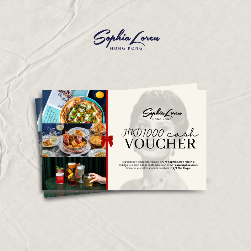 This HKD1000 cash voucher includes person’s selection from all menus at G/F Sophia Loren Pizzeria and 2/F The Stage.